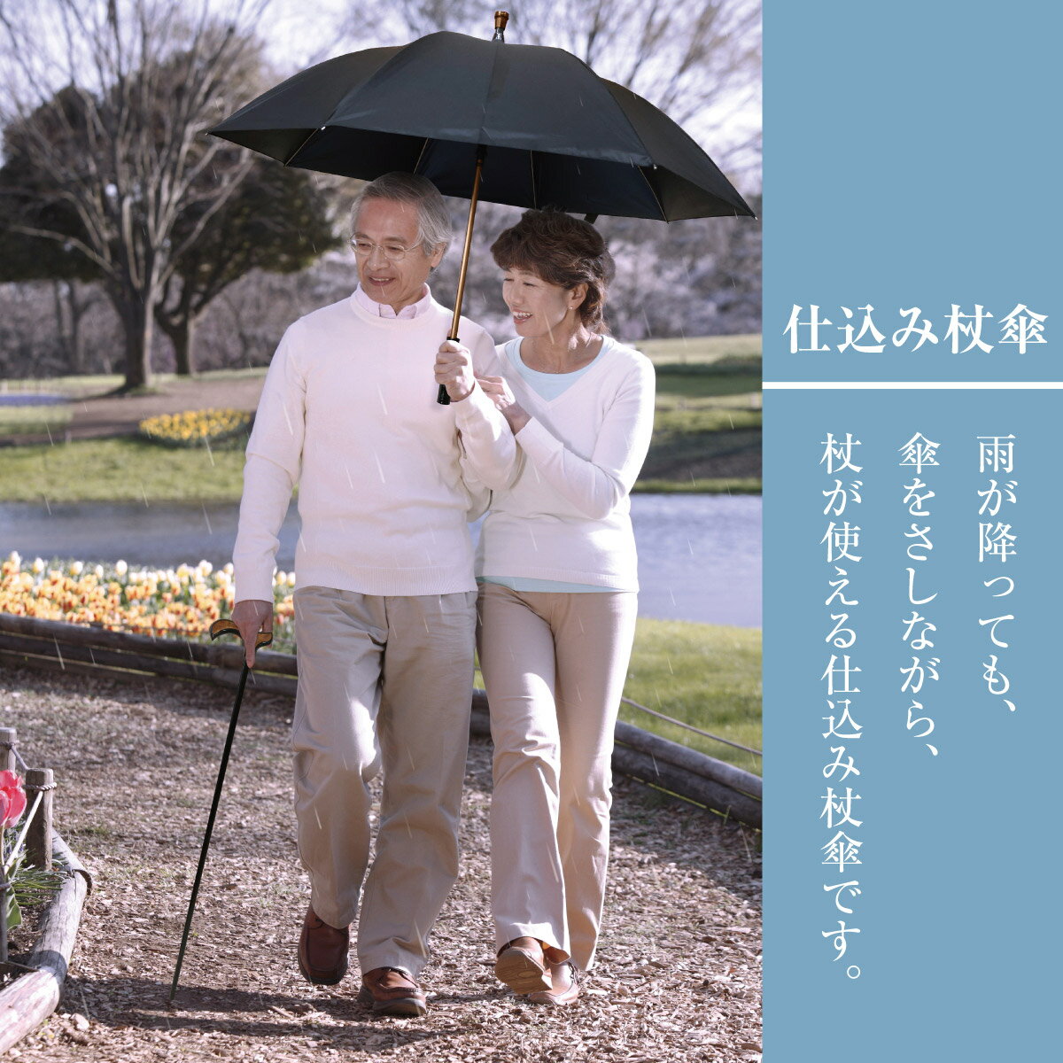 傘と杖が同時に使える仕込み杖傘杖傘を杖として使用中、雨が降れば杖を取り出して、傘をさしながら杖が使える仕込み傘です。