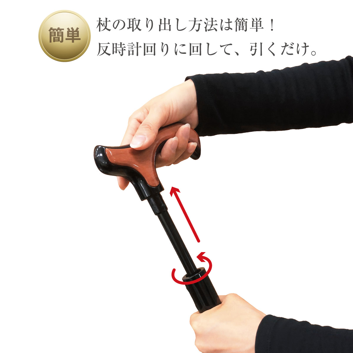 傘と杖が同時に使える仕込み杖傘杖傘を杖として使用中、雨が降れば杖を取り出して、傘をさしながら杖が使える仕込み傘です。