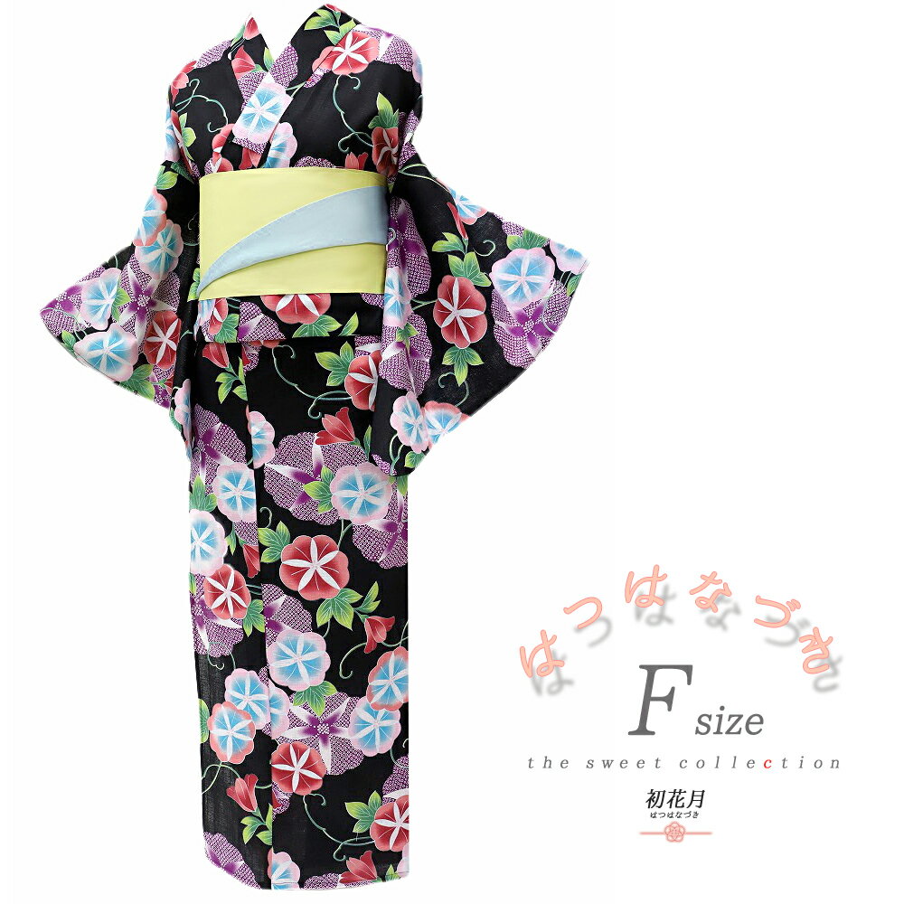 浴衣 レディース フリーサイズ 3点セット 黒地 黒 ブラック 花 朝顔 金魚 流水 選べる 半幅帯 下駄 おまかせ 夏祭り 花火大会 和柄 シンプル 派手 オシャレ 可愛い 大人可愛い 大人 エレガント Mサイズ Lサイズ No.11-0156