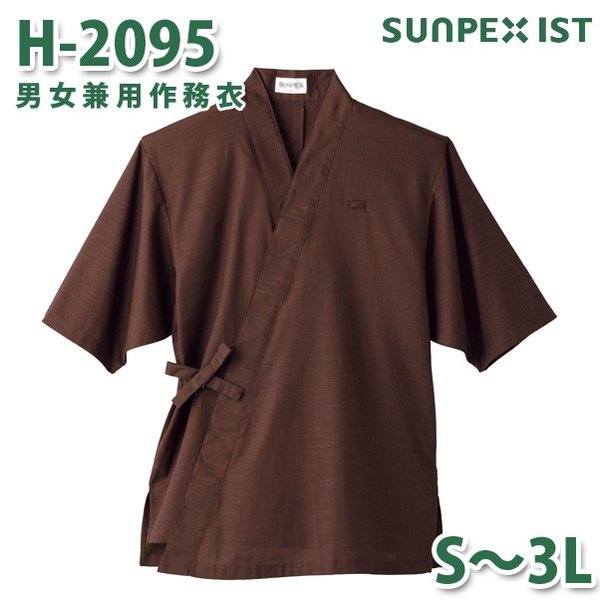 H-2095 男女兼用作務衣 ブラウン S〜3L サンペックスイスト 作業着 和服 着物 浴衣 部屋着 パジャマSALEセール