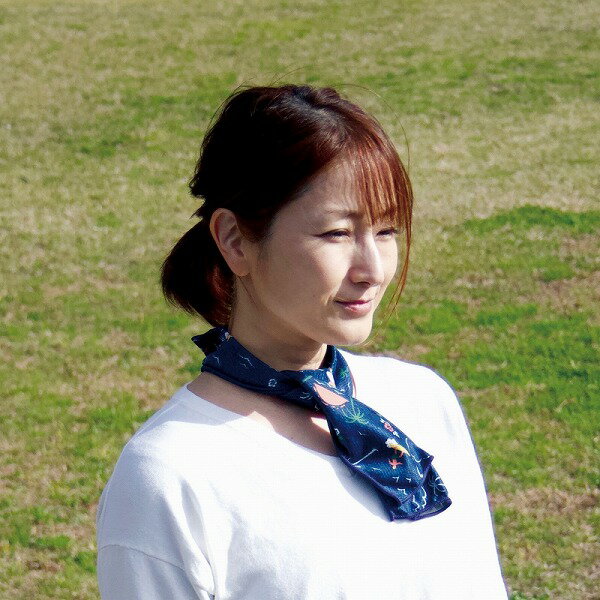 精密に施されたプリントは首に巻くとお洒落に使えます。