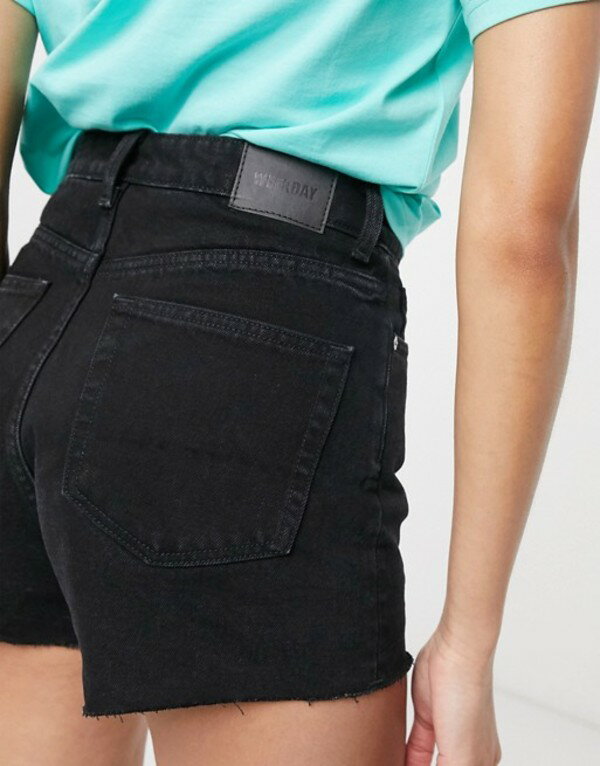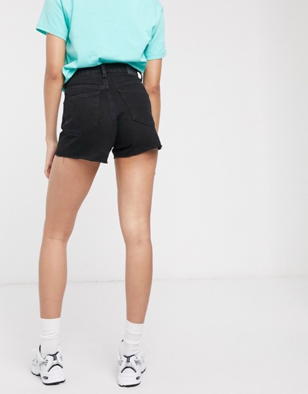 ウィークデイ レディース デニムパンツ ボトムス Weekday Rowe organic cotton denim mom shorts in echo black Echo black