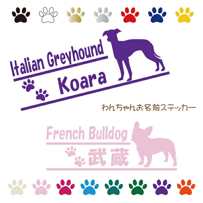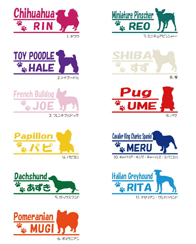 この商品は 【横27cm】名入りドッグネーム長方形ステッカー 犬種12種 カラー15色 車 犬 名前 カッティングステッカー ドックインカー 肉球 ゲージ 犬小屋 オリジナル 名前入り 表札 シール 防水 強力粘着 ペットグッズ/かわいい かっこいい おしゃれ 雑貨 動物【メール便 送料無料!】 ポイント 犬の名前変更無料!チワワ トイプードル フレンチブルドッグ パピヨン ダックスフンド ポメラニアン ミニチュアピンシャー 柴 パグ スパニエル グレイハウンド 名入れ 名前が入る わんちゃんのかわいいステッカー ◇サイズ横27cm×縦10cm◇犬の種類1.チワワ2.トイプードル3.フレンチブルドッグ4.パピヨン5.ダックスフンド6.ポメラニアン7.ミニチュアピンシャー8.柴9.パグ10.キャバリア・キング・チャールズ・スパニエル11.イタリアン・グレイハウンド12.その他 この中にない犬種は犬種一覧からお選び頂けます。